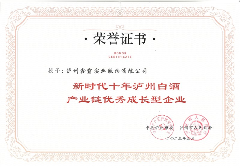 瀘州鑫霸實業(yè)股份有限公司榮獲“新時代十年瀘州白酒產(chǎn)業(yè)鏈優(yōu)秀成長型企業(yè)”,集團董事長、黨委書記魏云飛出席授牌儀式。