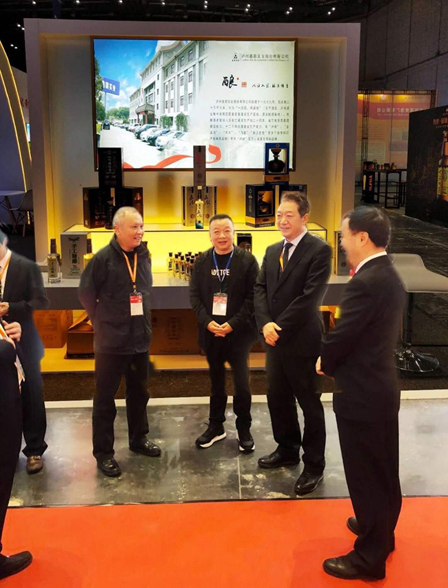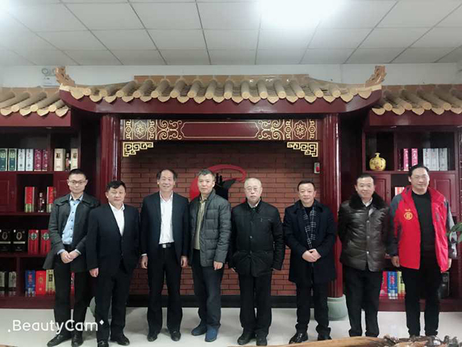 白酒專家胡永松教授(右二),瀘州市酒業促進局局長任小波(左二)在公司董事長魏云飛(右一)陪同下指導公司工作。