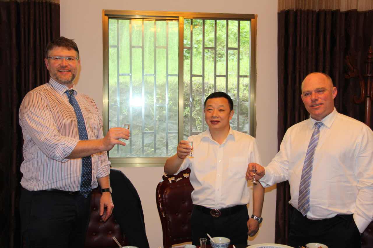 勁牌酒業股份有限公司董事長吳少勛(左三)等與公司董事長魏云飛(右三)在瀘州鑫霸實業公司合影