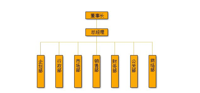 董事長(zhǎng):領(lǐng)導(dǎo)公司方向與策略。 總經(jīng)理:負(fù)責(zé)公司全部事宜 行政部:配合總經(jīng)理的工作安排 市場(chǎng)部:完成市場(chǎng)調(diào)研,并作出相應(yīng)應(yīng)對(duì)措施 銷售部:負(fù)責(zé)市場(chǎng)開(kāi)發(fā)及銷售公司產(chǎn)品 財(cái)務(wù)部:負(fù)責(zé)公司的財(cái)政 公關(guān)部:負(fù)責(zé)接待 網(wǎng)絡(luò)部:負(fù)責(zé)公司官網(wǎng)及推廣 |